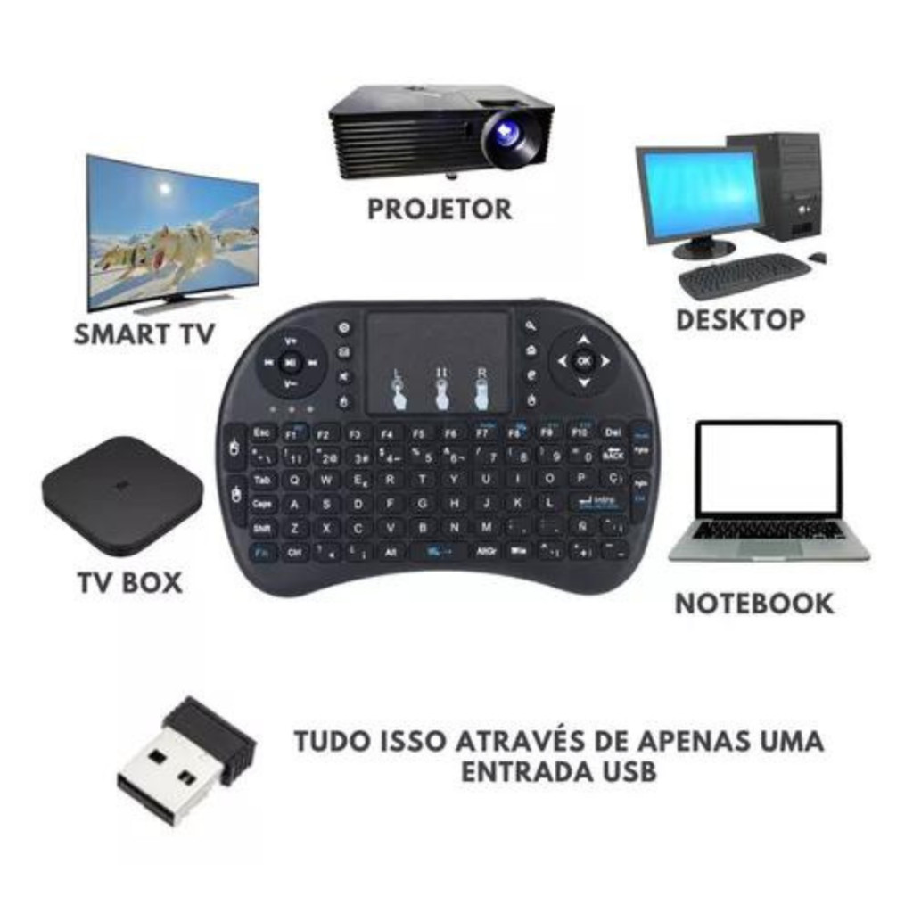 Mini Teclado Wireless Bluetooth Touchpad Sem Fio Iluminado Teclado Preto